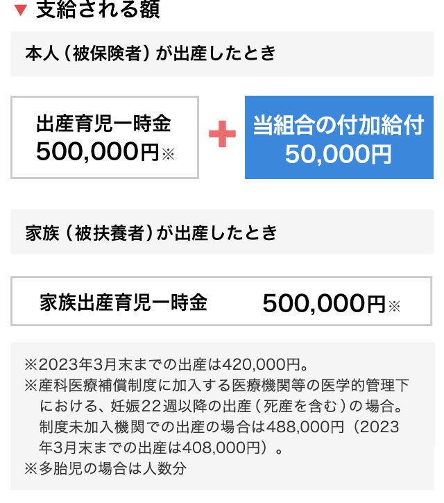 当組合の付加給付「出産育児一時金付加金」
